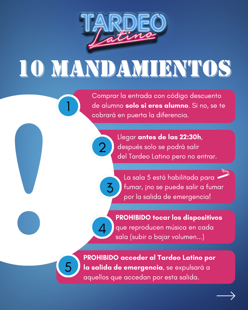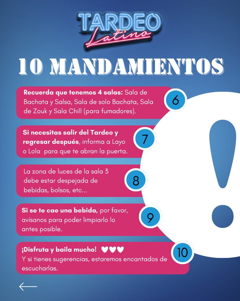SALA DE BACHATA – SALA DE SALSA Y BACHATA – SALA DE KIZOMBA Y ZOUK – SALA CHILL Y FUMADORES